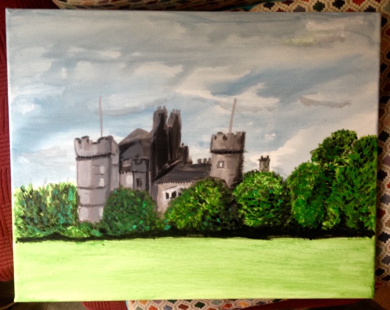 Continuing with the theme of Irish castles that I’ve been doing lately, here is a painting of Malahide castle in the north of Dublin that I did over the weekend. This is the largest canvas I’ve used to paint on so far (can’t remember the dimensions).