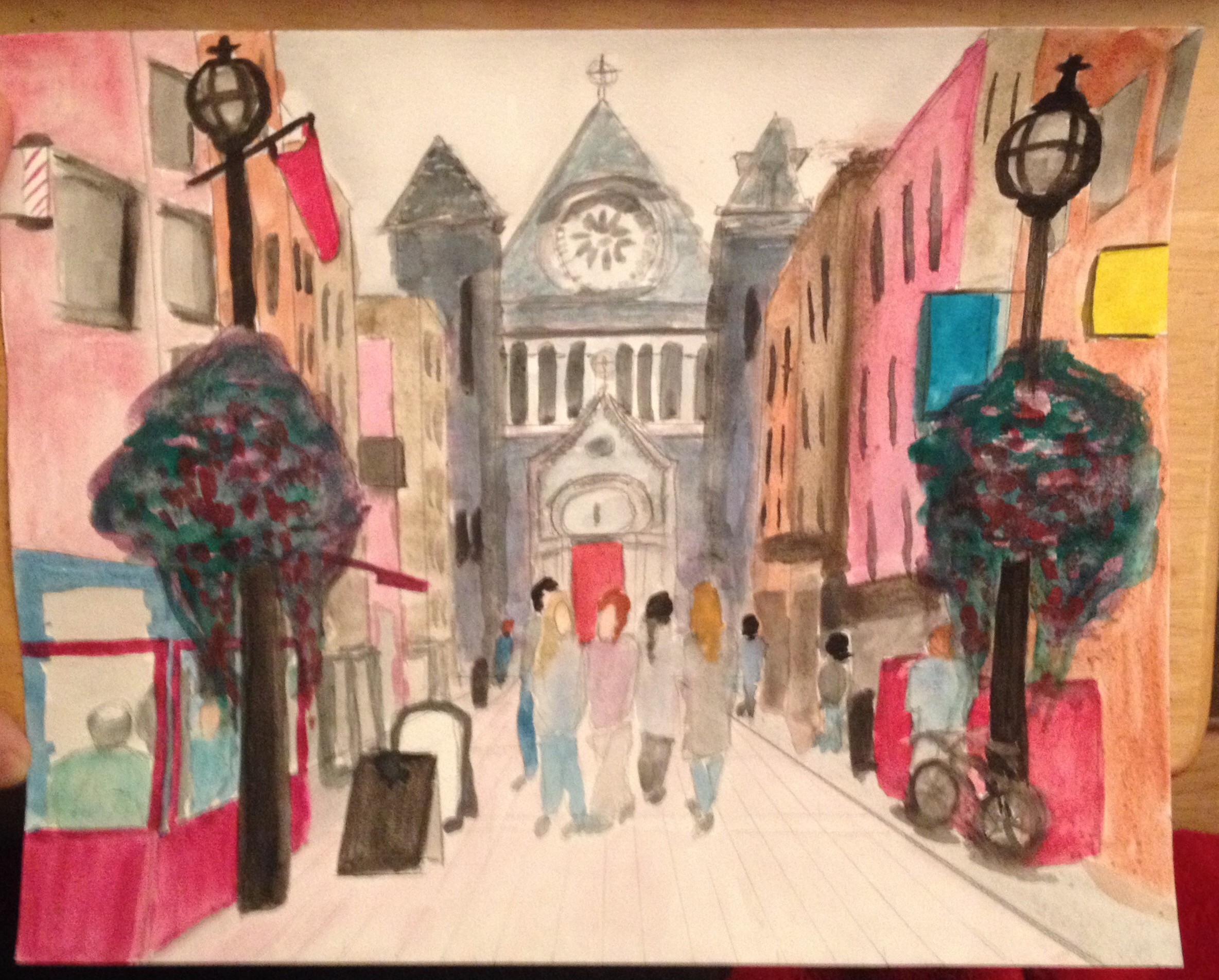 You’re aboslutely right, watercolours are really tricky in that way. It just needs practice though. The blending together effect is probably a wet-into-wet thing were you allow the paint to do its own thing. I look forward to more interesting urban scenes from you!